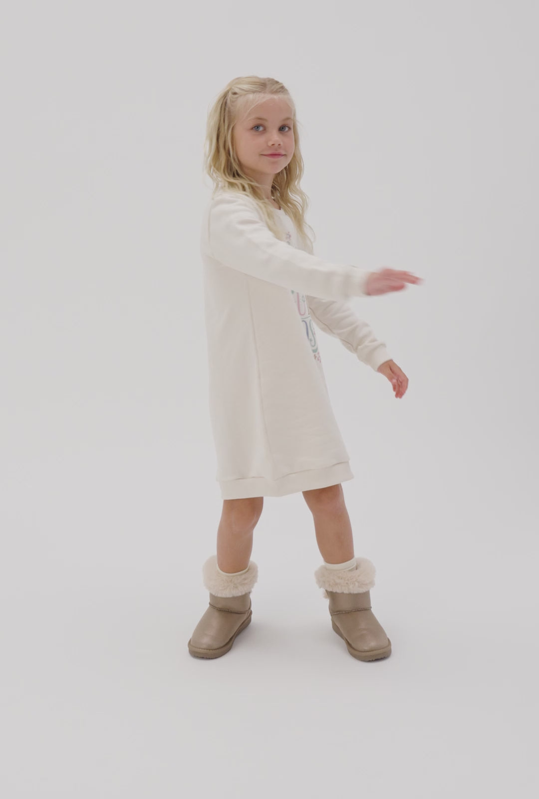 Dieses Design ist mit Kunstfell gefüttert und hat eine Innensohle, die die Kleinen warm hält. Mit einer Schleife auf der Rückseite und einem Logo an der Ferse.