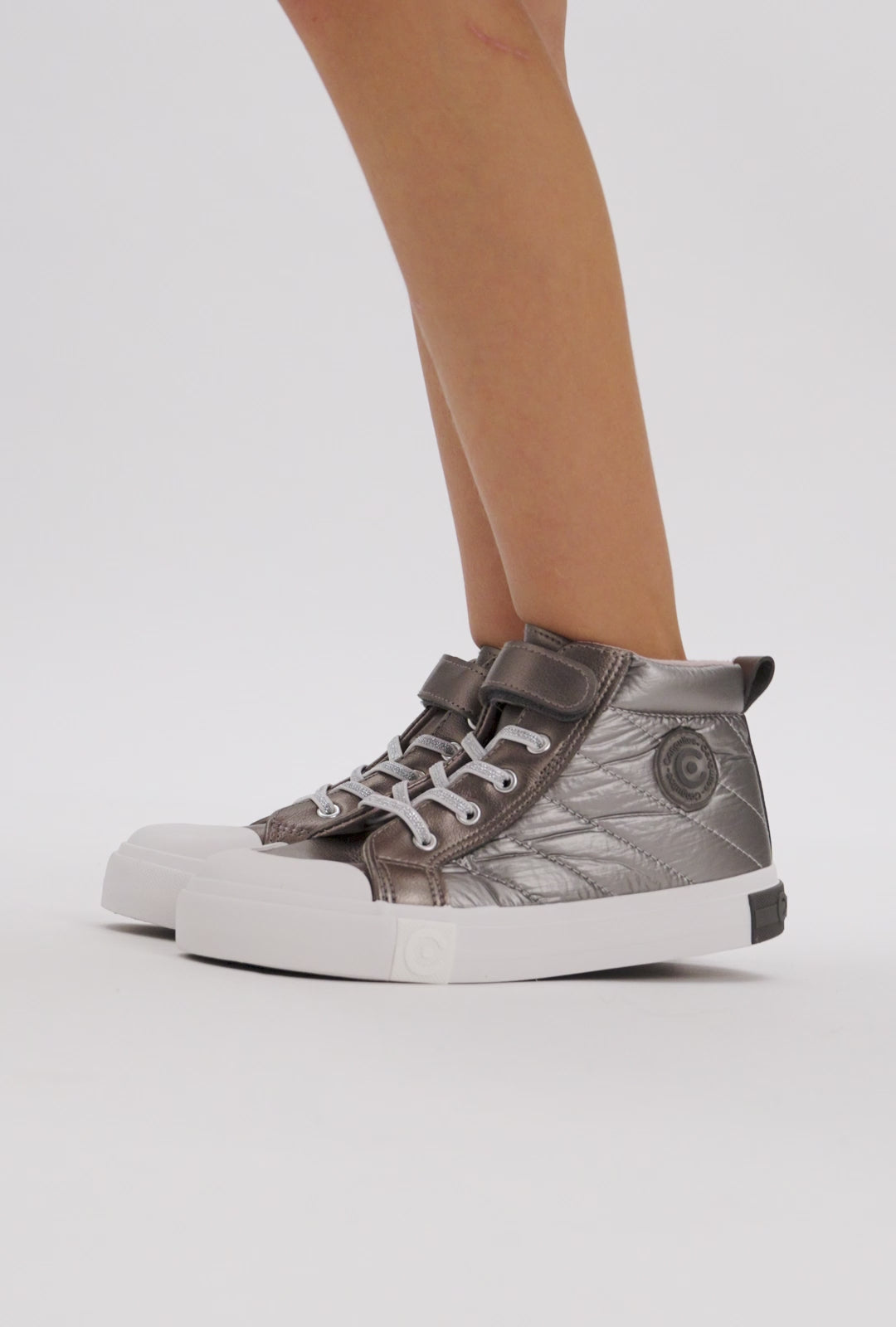 Der Silber Hochgurt -Turnschuhe von Conguitos sind die perfekten Schuhe für Mädchen und Kleinkinder, die sich von Stil und Komfort abheben möchten. Mit einem glänzenden Silberdesign verleihen diese Turnschuhe jedem Outfit eine lustige und elegante Note. Die elastischen Schnürsenkel und der Haken-Schleifen-Riemen machen sie leicht anzuziehen und abzunehmen, während der innere Reißverschluss eine schnelle und komfortable Passform sorgt.