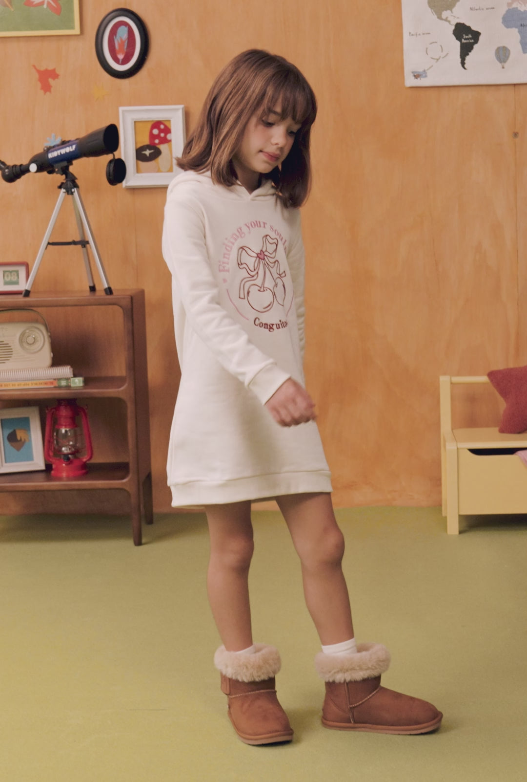 Die Water Repellent Goflex Fur Australian Boots in Tan sind der ideale Schuh für kalte und regnerische Tage. Mit einem eleganten braunen Design kombinieren diese australischen Stiefel Komfort, Wärme und Schutz. Das synthetische Fellfutter hält die Füße der Kinder warm, während das wasserdichte Obermaterial dafür sorgt, dass sie sorgenfrei im Regen spielen können.