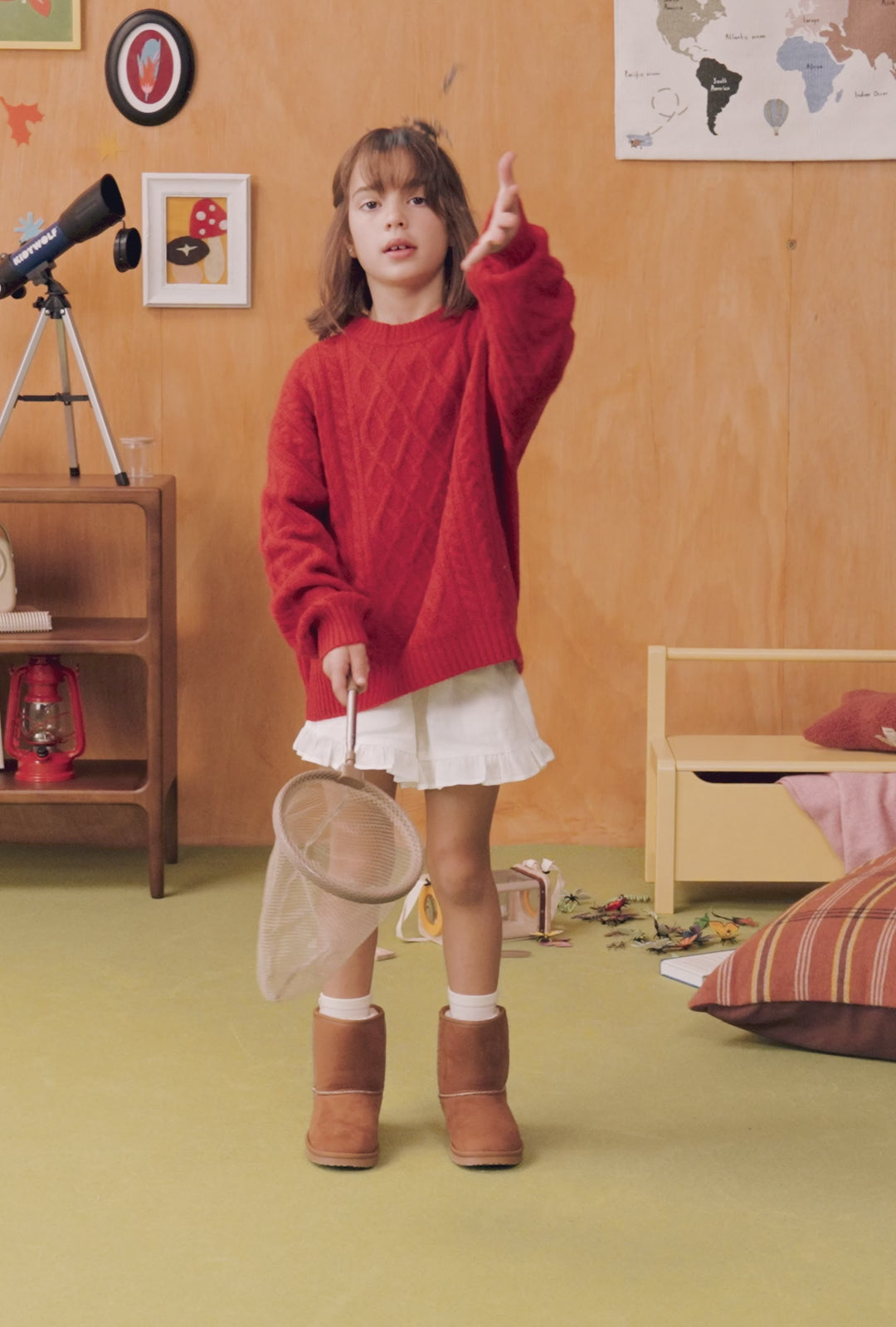Dieses Design wird aus synthetischer Pelzfutter und Innensohle hergestellt, um die Kleinen warm zu halten. Sein Mikrofaser-Außengewebe verfügt über eine Wasserabnahme-Technologie, die die ersten Regentropfen abweist und vor Feuchtigkeit schützt. Es verfügt auch über Nähtedetails und Logo auf der Ferse.