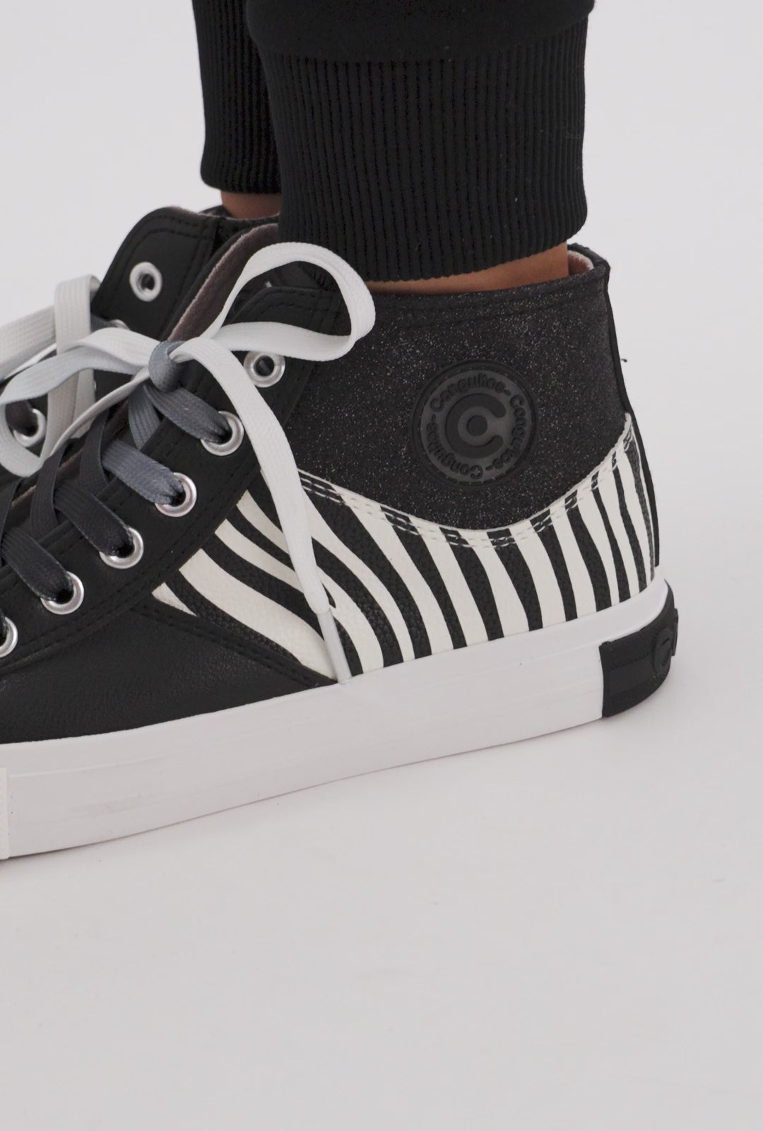 Der Zebra hohe Turnschuhe von Conguitos sind die perfekten Schuhe für Mädchen, die einen einzigartigen und unterhaltsamen Stil wollen. Mit ihrem Schwarzweiß -Zebra -Druck verleihen diese Turnschuhe jedem Outfit eine moderne und mutige Note, was jeden Schritt zu einem modischen Statement macht.