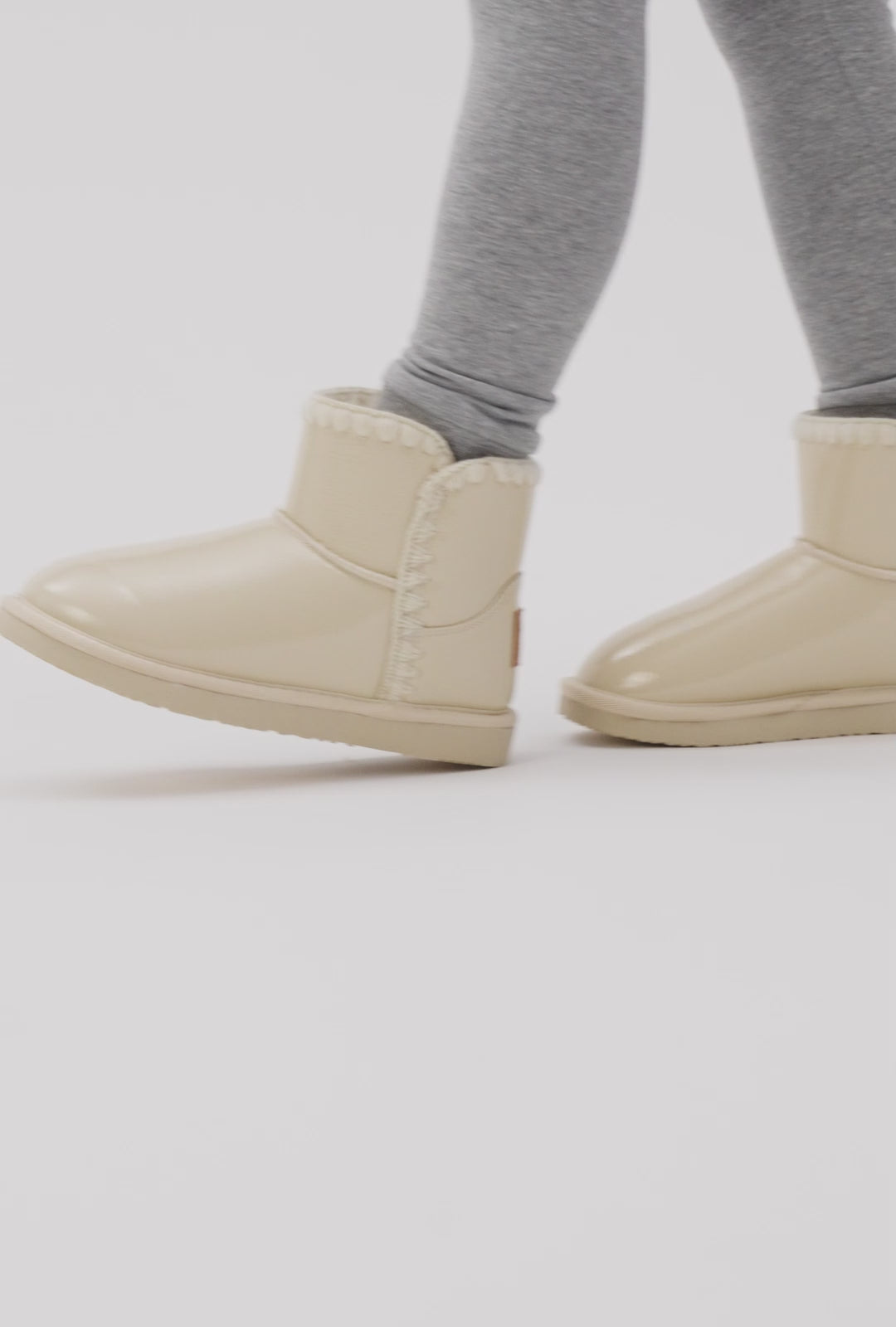 Las Botas Australianas Pelo Charol Beige están diseñadas para mantener los pies de los más pequeños cómodos y calentitos durante los meses más fríos. Su diseño en charol beige, con acabado brillante y detalle de pelo sintético, aporta un toque elegante y dulce que combina fácilmente con cualquier look invernal.