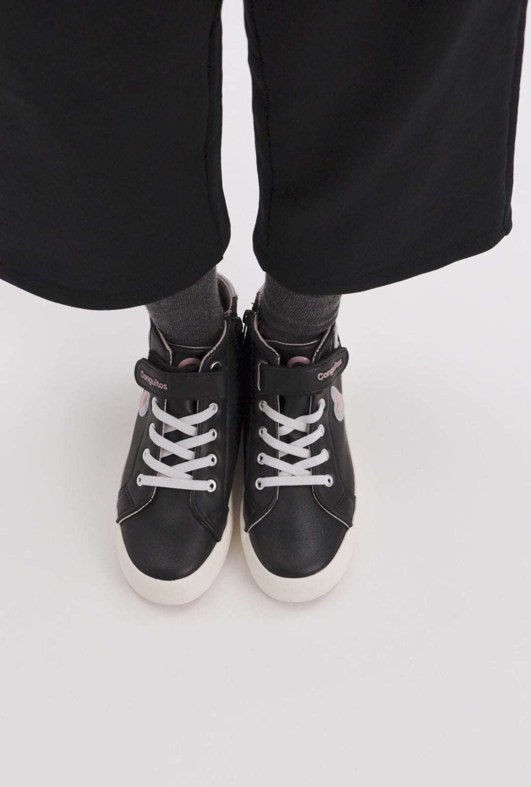 Les Black Hearts High Strap Sneakers de Conguitos sont le choix parfait pour les filles qui veulent un style unique et amusant. Avec un design noir élégant et des détails de cœurs vibrants, ces baskets ajoutent une touche moderne et ludique à chaque pas.