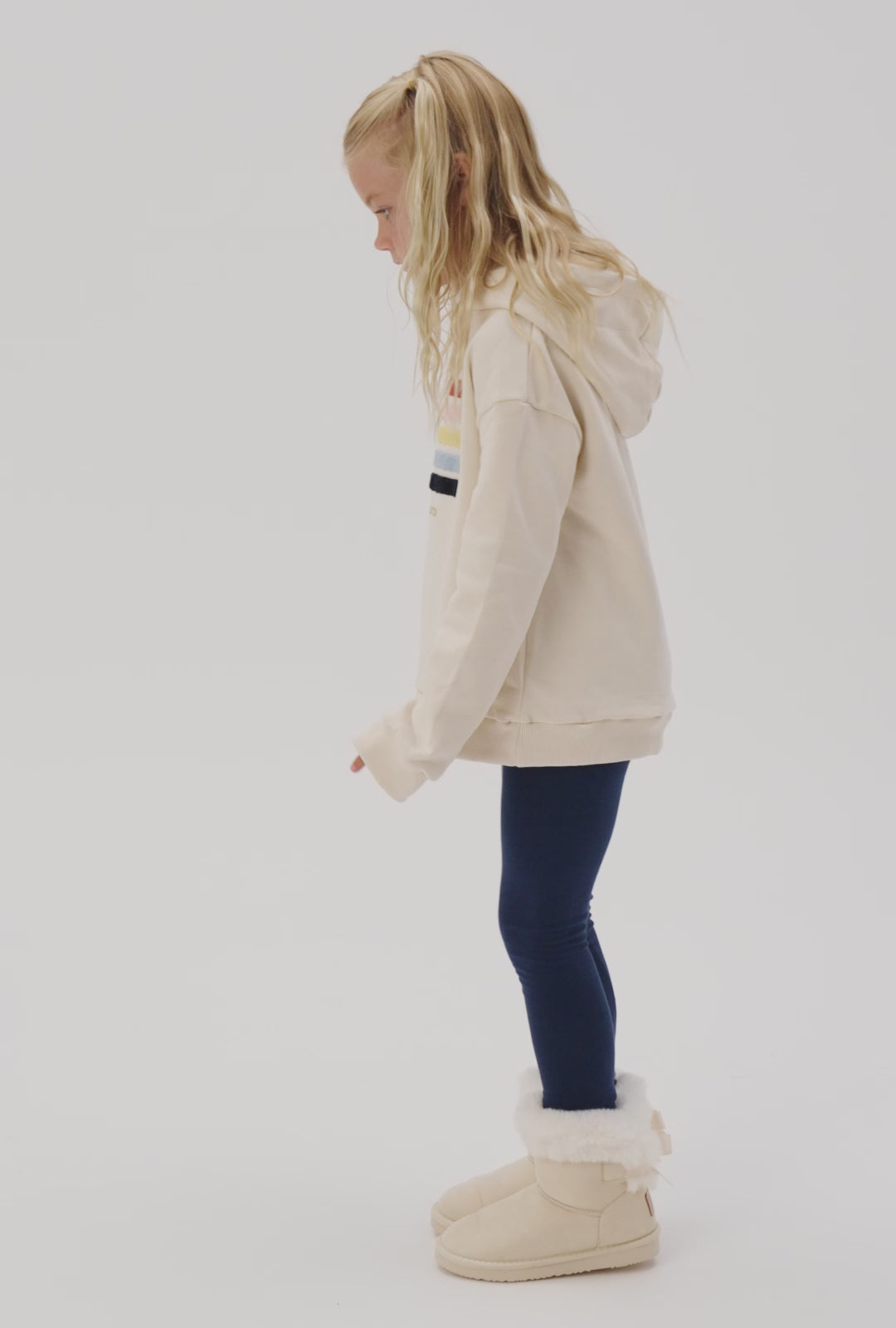 The Beige Bow Fur Australian Boots B&W are cozy and practical little boots designed to keep toddlers' feet warm and dry during winter. Made from water-repellent material, they help protect little feet on rainy or humid days. The interior is lined with soft synthetic fur for constant warmth and comfort.