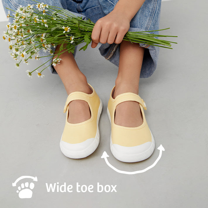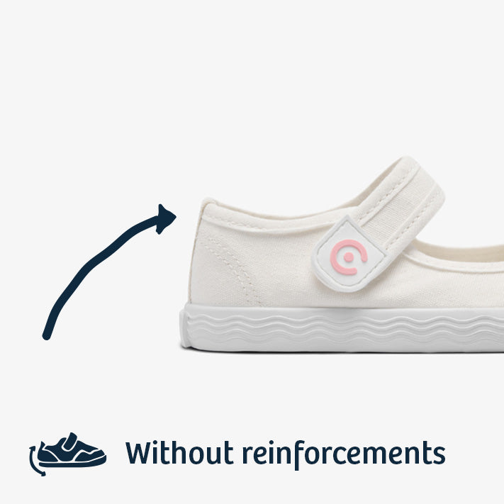 Multi Canvas Barefoot Goflex Mary Janes with a comfy sporty Mary Jane style, featuring an original flower-and-butterfly print in soft blue and pink tones on white for a different everyday look, plus an easy hook-and-loop strap for quick on and off.