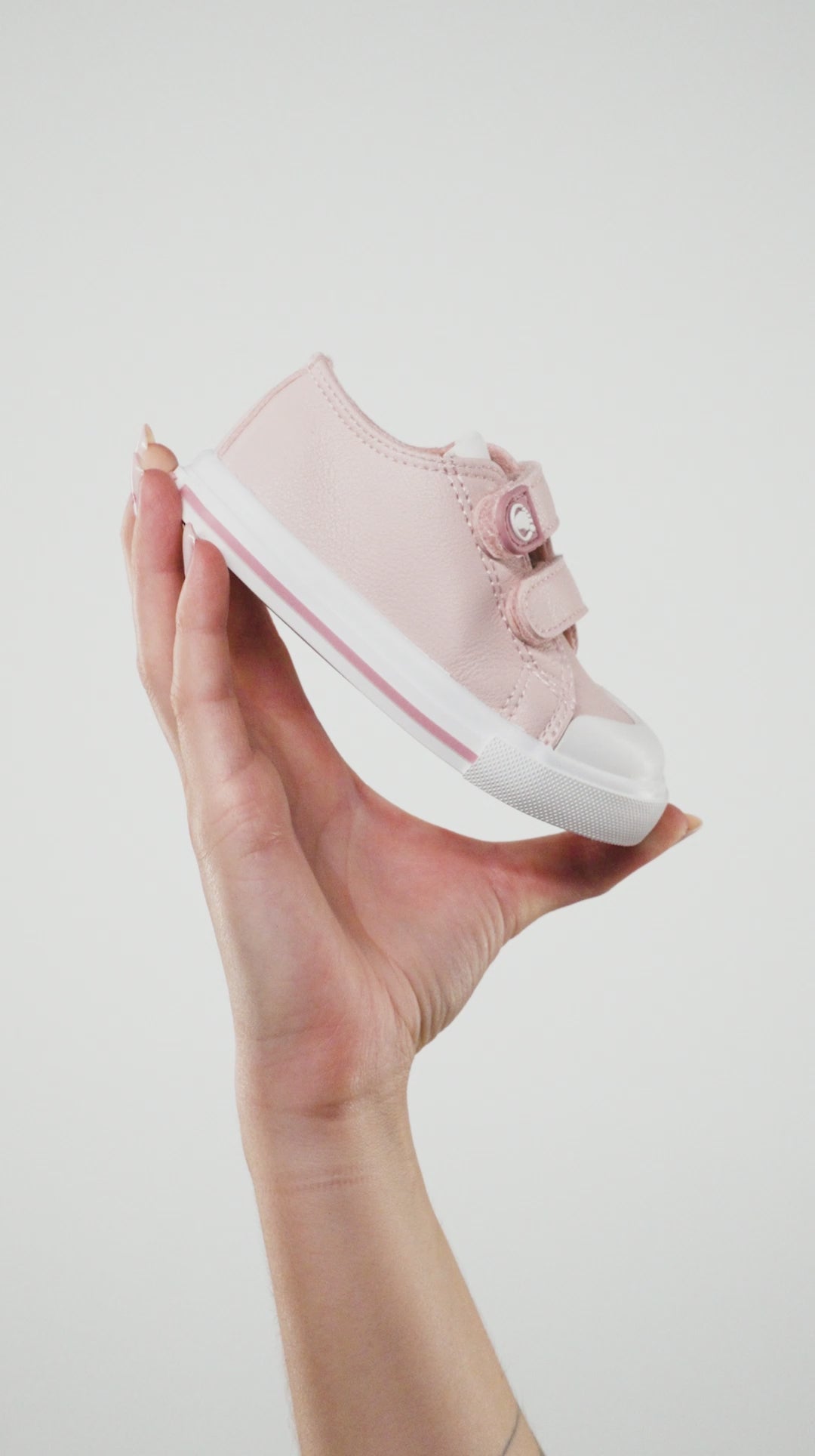 Low-cut baby sneakers in pink. An essential for their daily wear.