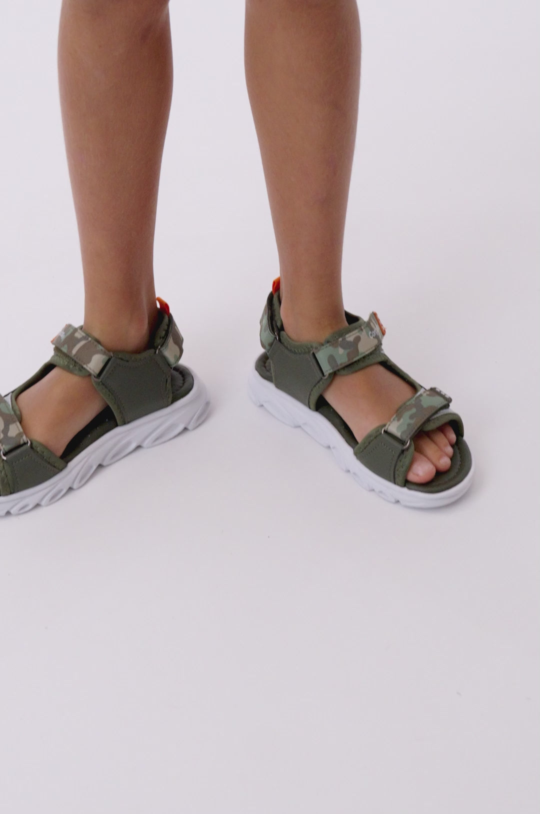 As Sandálias Esportivas Verdes com Luzes foram feitas para proporcionar o máximo de conforto com um estilo cheio de energia. Seu design em tons de verde, com detalhes camuflados e uma estrela em relevo, adiciona um toque aventureiro, perfeito para os dias mais ativos.