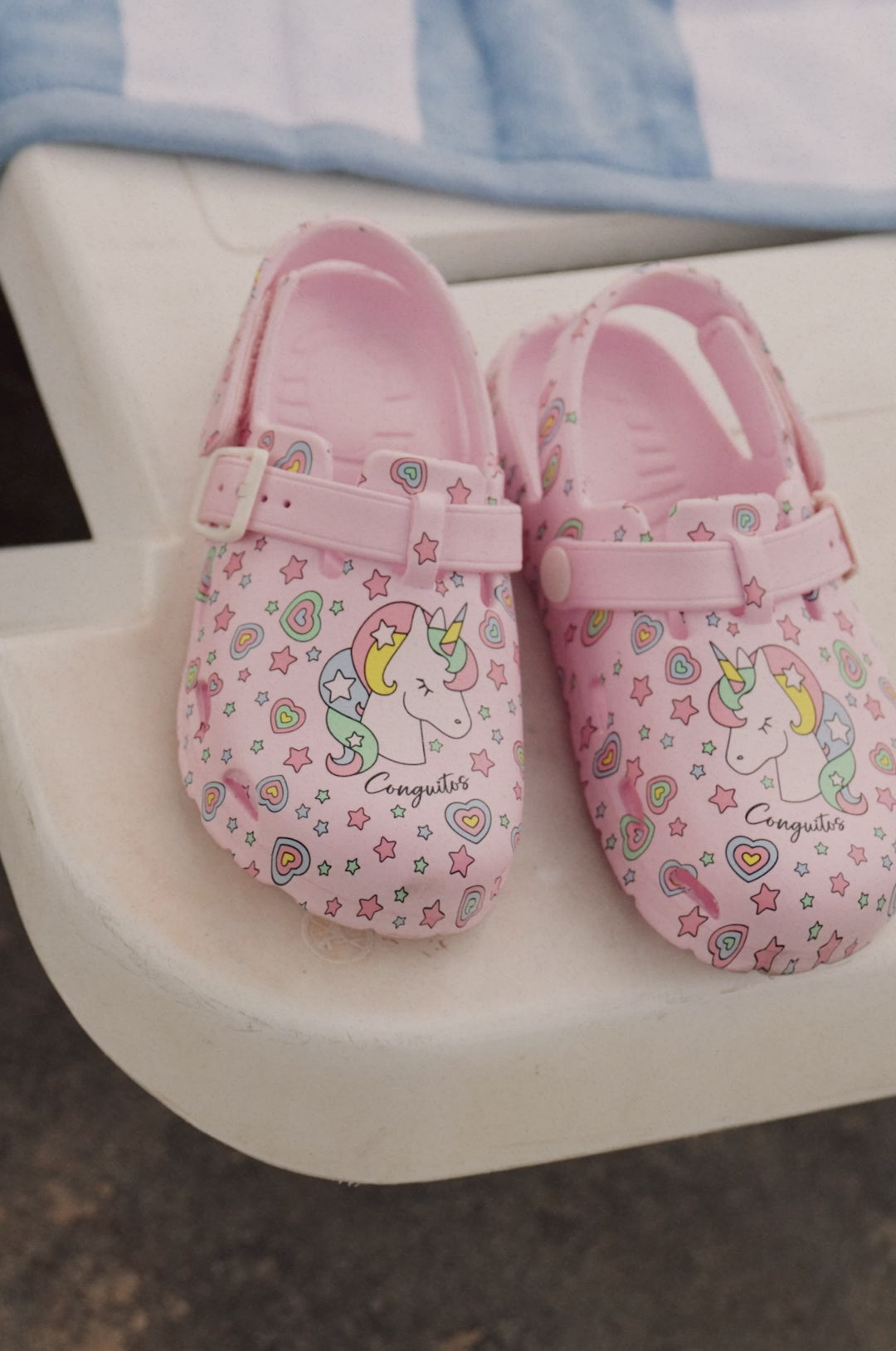 Os Tamancos Unicórnio Rosa foram criados para meninas que adoram mundos mágicos e coloridos. Com uma encantadora estampa de unicórnios, arco-íris e estrelas, são o complemento ideal para trazer um toque de fantasia aos dias de verão.