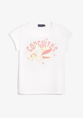 Camiseta com design de unicórnio da Conguitos. Uma peça branca, perfeita para looks mágicos e divertidos.